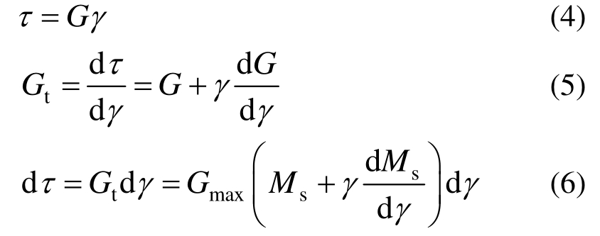 式中:Gt为切线动剪切模量;τ为平均剪应力;dτ为剪应力增量;dγ为动剪应变增量。