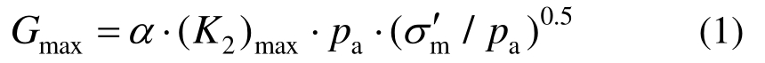 /kPa为平均有效应力;(K2)max为与相对密度或剪切波速相关的模量系数,约为80~180[25];系数α=21.7;pa为标准大气压。