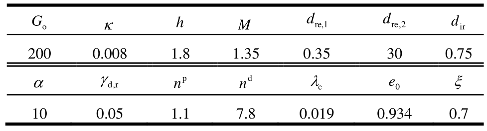 Table 2 Model parameters for saturated sand[18―20]