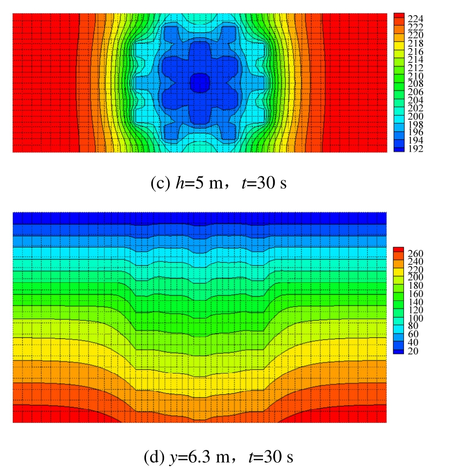 Fig.9 Contour of the pore water pressure for model SC-2 at t=15s/30s