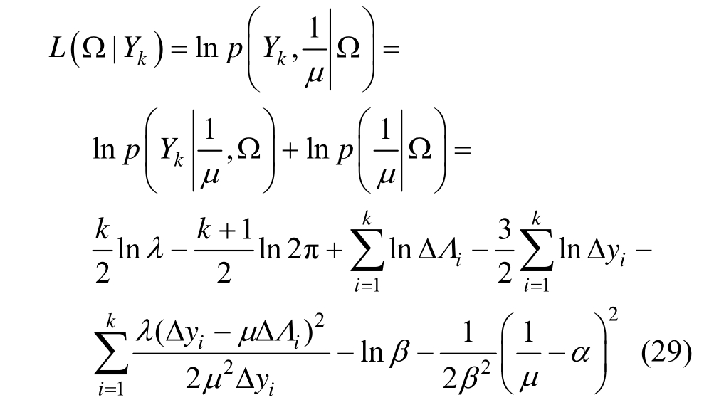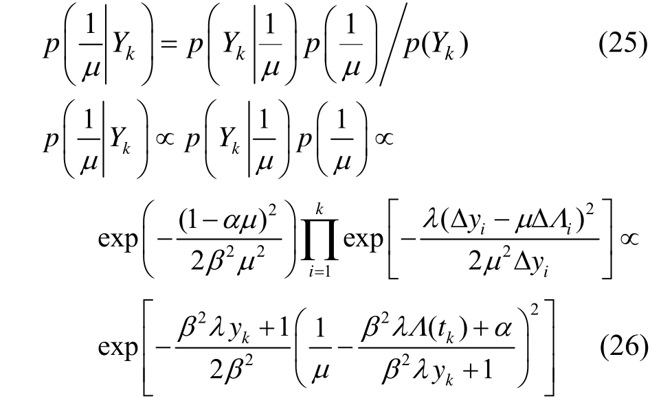 对随机参数μ采用贝叶斯后验估计,在给定参数μ的情况下,退化数据集的联合分布为: