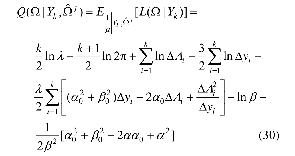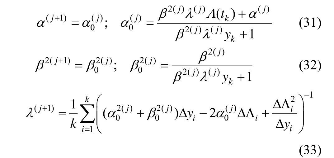λ(j+1 )),在已知退化数据集Y的条件下,根据k式(29),对隐变量1/μ求期望可得: