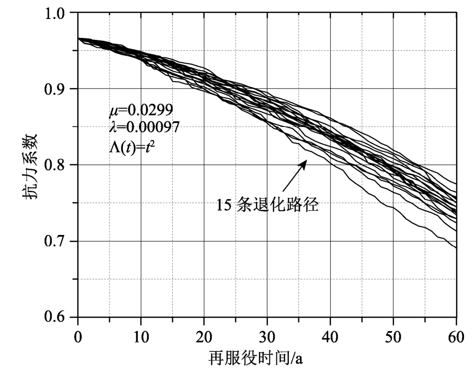 图8 基于逆高斯过程的抗力系数演化曲线Fig.8 The simulated resistance coefficient evolution curves using the IGP