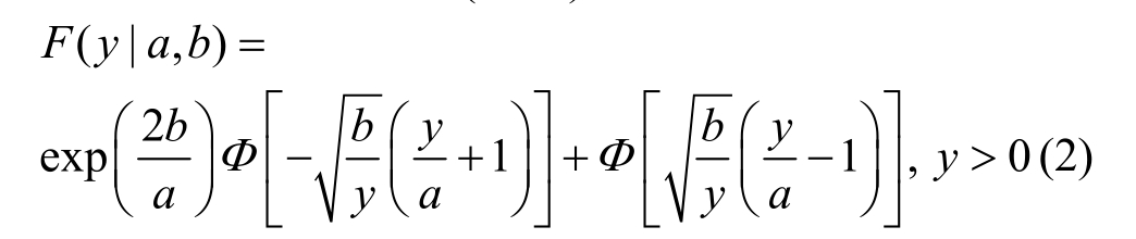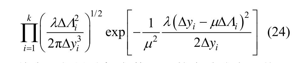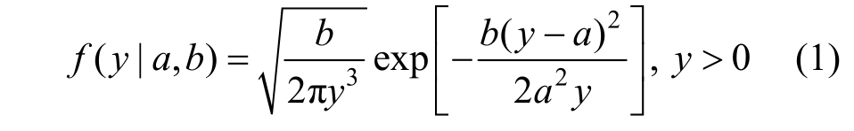 假设随机变量 Y服从逆高斯分布,即y ~ IG(a,b),参数 a、b均为正数,分别为分布的位置和形状参数,其均值为a,方差为a3/b,其概率密度函数(PDF)为: