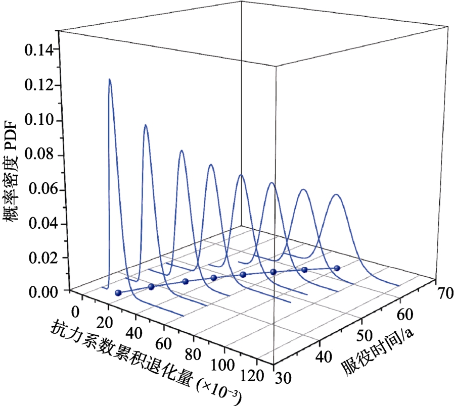 Fig.9 The probability density function of the cumulative degradation loss of resistance coefficient