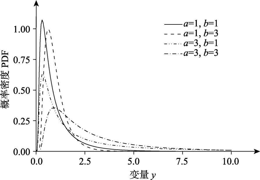 图1 参数a、b不同取值时逆高斯分布的概率密度函数Fig.1 The probability density functions of inverse Gaussian