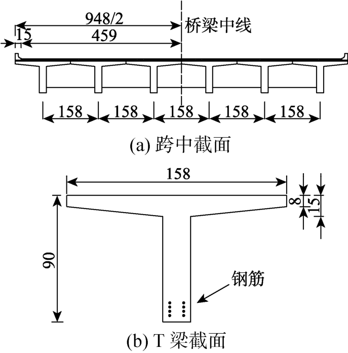 图6 某T梁桥跨中截面 /cm Fig.6 Mid-span cross-section of a T-girder bridge