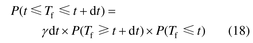 式中:Tf为结构失效时间随机变量;P(t ≤ T f ≤ t + dt )表示结构在时间范围[t,t+dt]内的失效概率; P (Tf ≤t)表示结构直到时刻t都不会失效的概率。如前所述,最不利荷载Sj出现的次数服从泊松过程,根据泊松过程的相关性质可得: