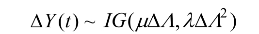 3) 增量ΔY(t)服从逆高斯分布,记作