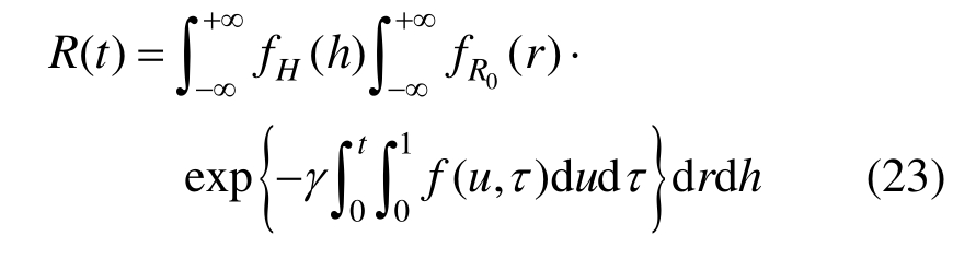 当考虑初始抗力R0和恒载H的随机性时,时变可靠度函数为: