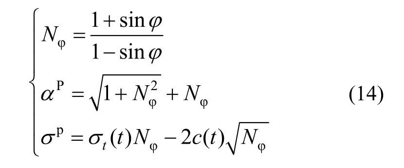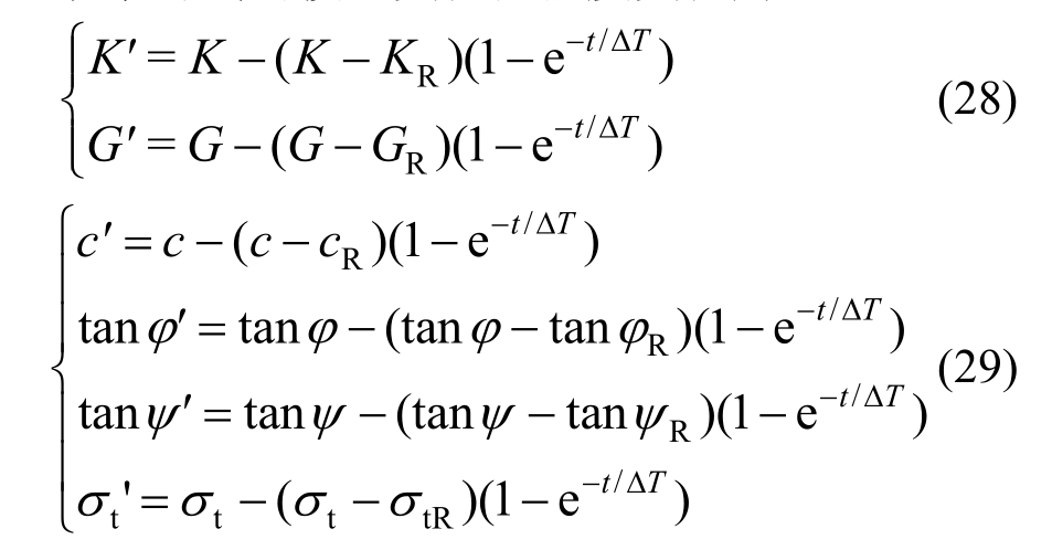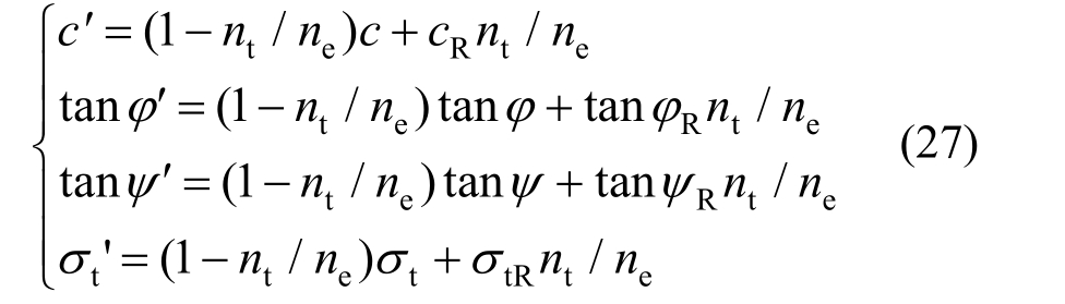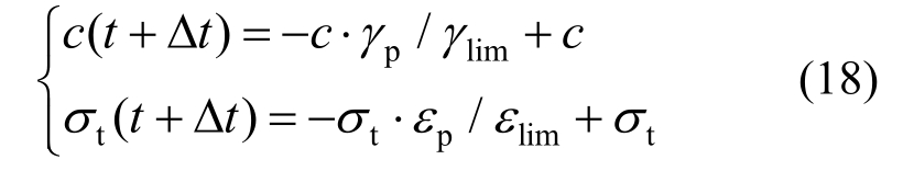 同时,根据当前时步的等效塑性剪应变及等效塑性体应变,对黏聚力及抗拉强度值进行折减,为