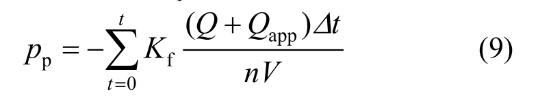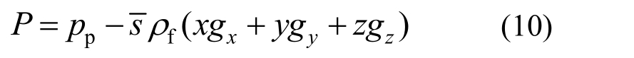 式中:n为孔隙率;Vn为节点总体积;Qapp为流量边界;∆t为计算时步。如果饱和度小于 1,则令该节点的孔隙水压力为0,如果饱和度等于1,则根据式(9)计算节点孔隙水压力pp为:
