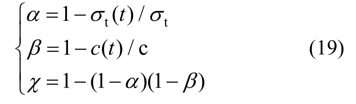 基于拉剪复合应变软化模型[20],可以定义3类损伤因子,分别为拉伸损伤因子α,剪切损伤因子β及联合损伤因子χ,为: