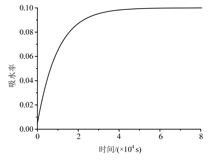 设ne=10%,∆T=104 s,则可绘制出饱和状态下不同时刻的吸水率随时间的变化,如图3所示。