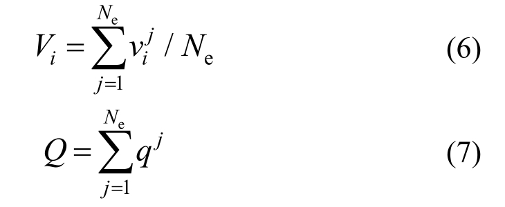 当有多个单元时,需对公共节点处的流速、流量进行叠加,设某节点是Ne个单元的公共节点,则该节点的平均流速及总流量可表述为:
