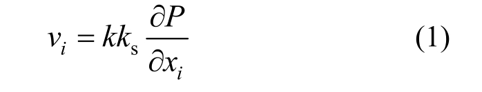 式中:vi为单元第 i个方向的流体流速;k/(m2·s·Pa−1)为流体的渗透系数;ks为相对渗透系数;P为节点流体的总压力;xj为节点的空间坐标。