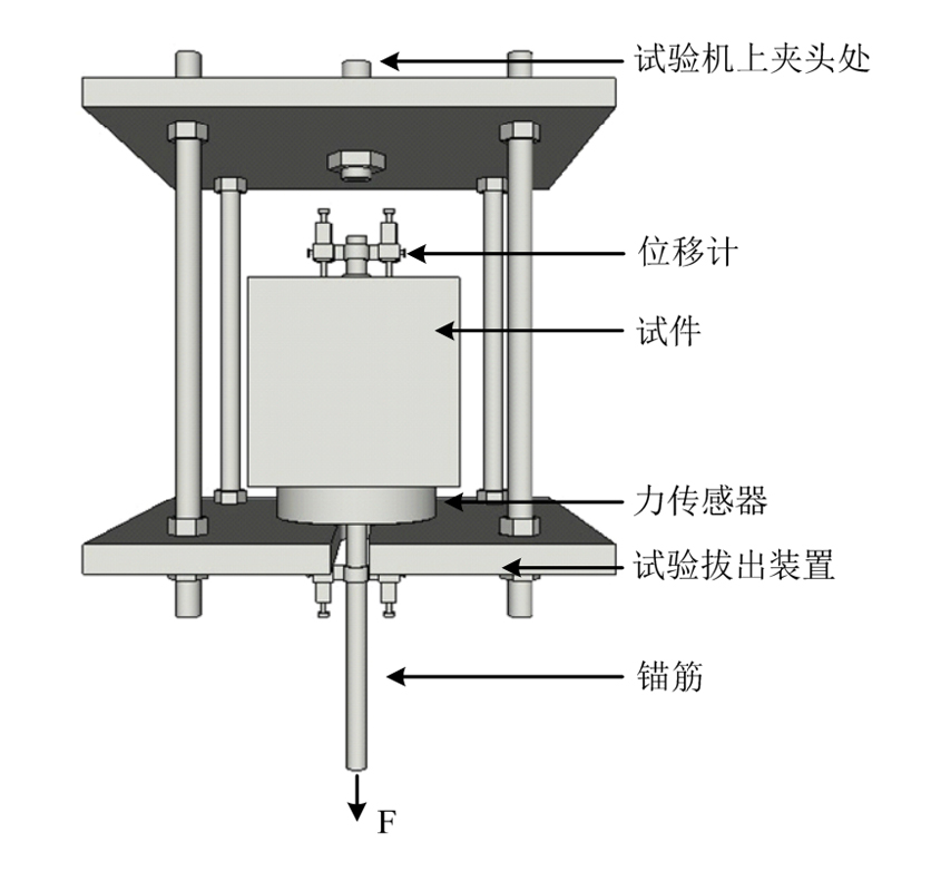 中心拔出试验在WA-1000B型电液式万能试验机上进行。中心拔出试验装置如图3所示。在加载端和自由端各安装两个高精度位移计测量试件两端的相对滑移值,加载端下部安装一个穿心力传感器采集拉拔力,以确保测量出的粘结力与滑移值一一对应。本试验采用美国NI高精度数据采集系统,采样频率 2048 Hz。拉拔力加载速率设定为0.18 kN/s~0.20 kN/s,随温度上升加载速率适当减小。