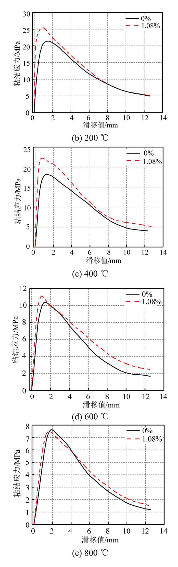 (1)随着温度升高,钢筋与混凝土间粘结强度、粘结刚度逐渐下降,残余粘结力也逐渐减小;当温度不超过 400℃时,钢筋的轻微锈蚀对粘结强度、粘结刚度损失具有较好的延缓作用。