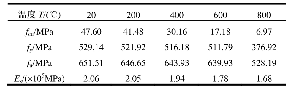 注:高温后钢筋与立方体材料试验恒温时间均为3 h。