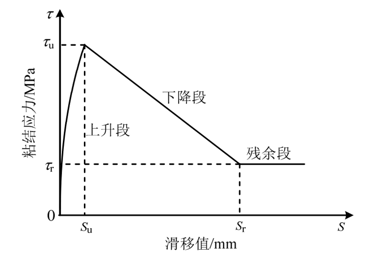 为此,本文结合已有相关学者的本构模型,基于试验数据,将粘结-滑移关系式进行了相应的优化,其关系式模型如图10所示。