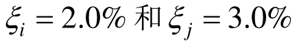 分别采用JZ20-2 NW平台1阶和10阶阻尼比。ωi和ωj分别为结构的1阶(1.07 Hz)和10阶频率(7.39 Hz)。