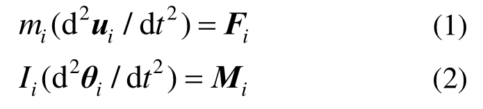海冰离散元单元的运动可分为平动和转动,依据牛顿第二定律表示为: