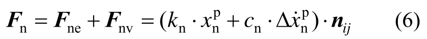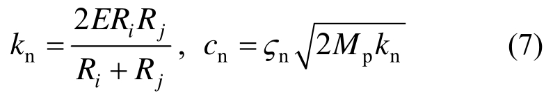 为两颗粒的法向相对速度;nij为颗粒的接触法向向量;kn和cn分别为接触的法向刚度和阻尼系数,可表示为: