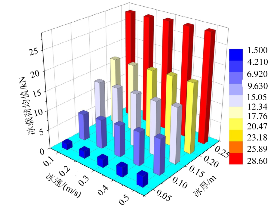 图14 不同冰速、冰厚下冰载荷均值