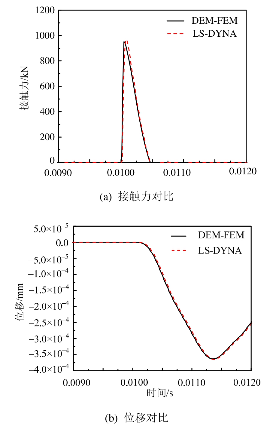 图10 DEM-FEM耦合方法与LS-DYNA的计算对比