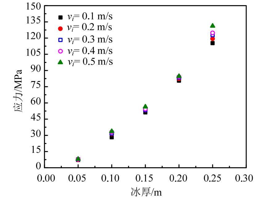 图22 不同冰厚下锥体结构的Von-Mises应力最大值