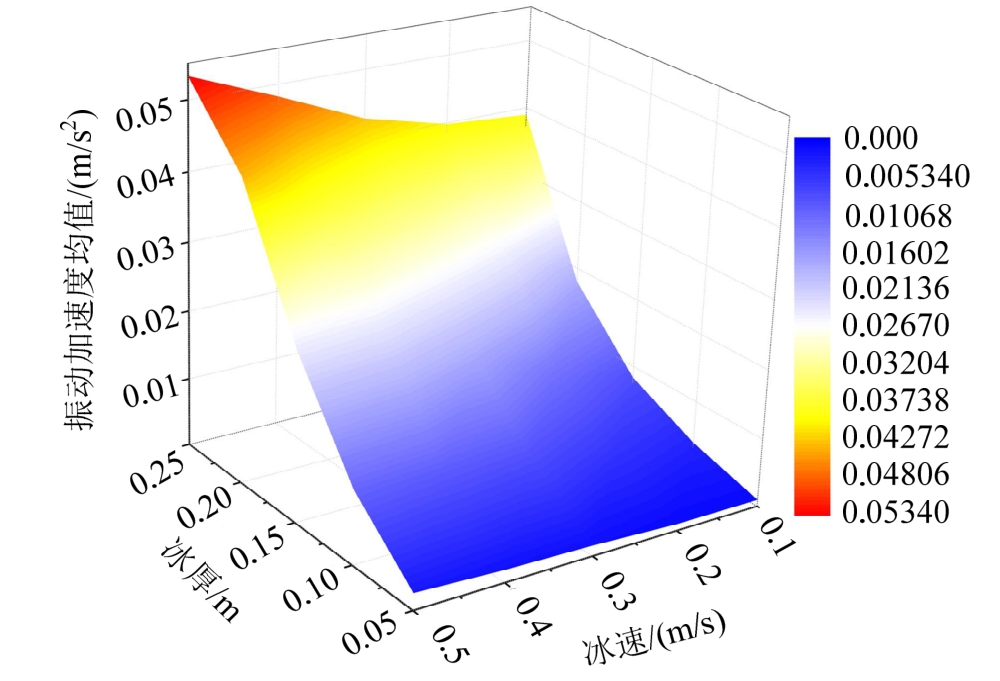 图17 冰速、冰厚与平台结构冰激振动加速度的关系