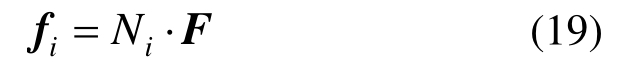 式中:fi为三角形i节点的节点力向量;F为颗粒与三角形单元的接触力向量;Ni为三角形单元的形函数。