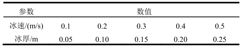 本文提出的离散元-有限元耦合模型不仅可在细观尺度上分析海冰与结构相互作用中的破坏状态,还可揭示结构冰激振动的内在机理,可为冰区结构的冰载荷、结构动力响应分析以及疲劳寿命估计提供一种有效的数值手段。但由于海冰的物理性质十分复杂,本文尚未考虑海冰强度、加载速率等因素。为更加合理地分析海冰与结构相互作用的问题,后续工作将从海冰的本构模型以及流体动力学方面发展相应的耦合模型。