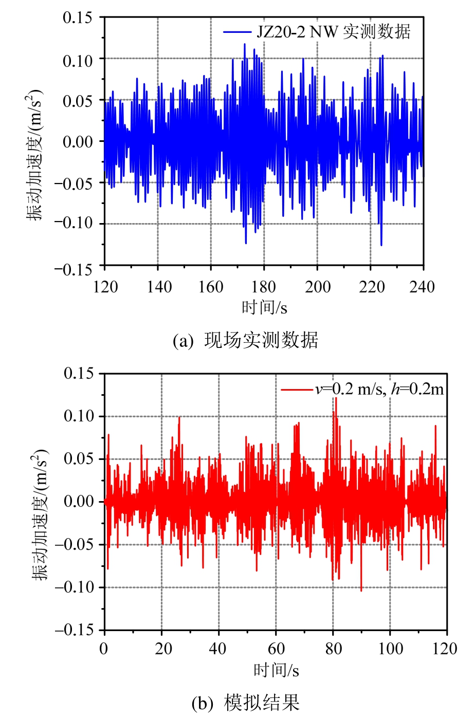 图18 JZ20-2NW平台冰激振动现场数据和数值模拟结果