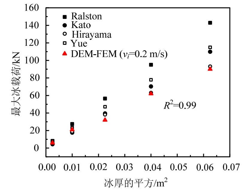 图15 模拟的冰载荷峰值与经典冰载荷公式对比