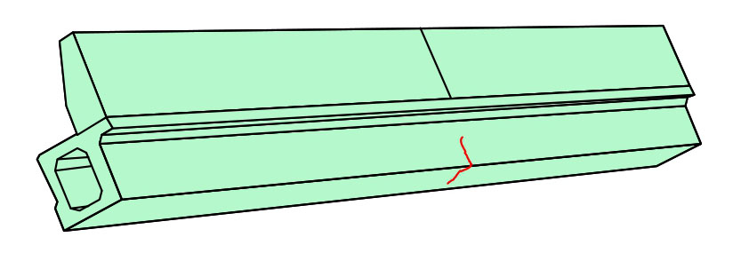 与空心板传统裂缝相比,杨司高架空心板裂缝有以下显著特征:1) 仅在边板外侧腹板发生延伸到底板的L型裂缝,边板内侧几乎无裂缝;2) 大多事故梁有且仅有一条裂缝;3) 裂缝位置与防撞护栏分缝的位置一一对应。