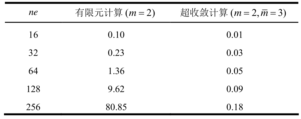 =3)作p型超收敛计算所用时间。易见,相对于有限元求解所用时间,p型超收敛计算所用时间非常微小,几可忽略。由表2可见,32个二次元网格经用三次元(