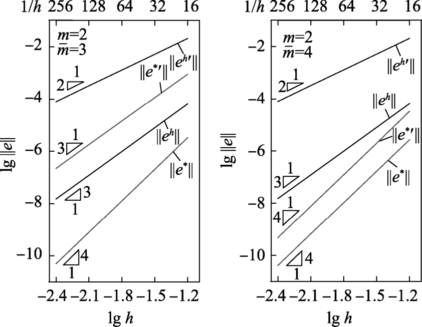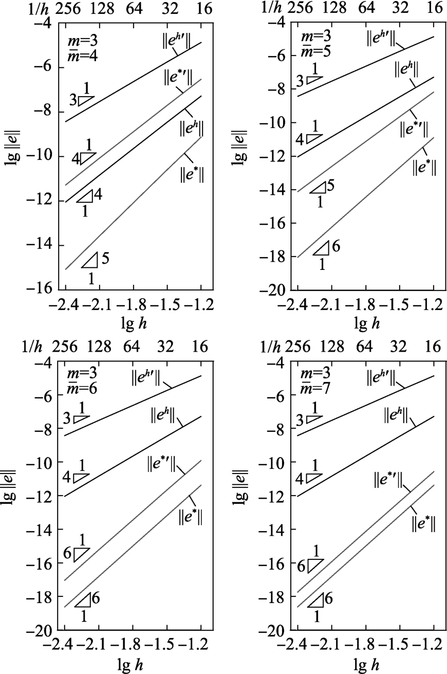 为考察本文方法的收敛阶,采用三次元(m=3)进行有限元计算,依次采用四次元(