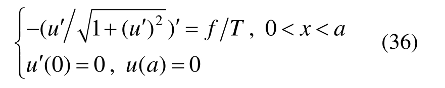 式中:u为半无限长膜的挠度;f为横向均布荷载;T为薄膜张力。上述微分方程可以进一步等价转换为如下形式: