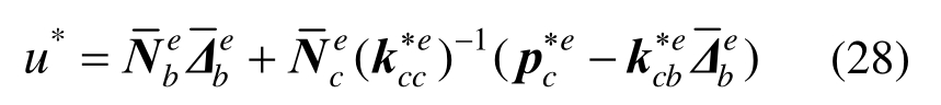 为单元荷载向量中内部自由度对应的子向量。由该方程可求得内部自由度解