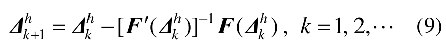 式中,F′(Δh )=∂F(Δh)/∂Δh是F(Δh)的Jacobi矩阵,具体计算如下: