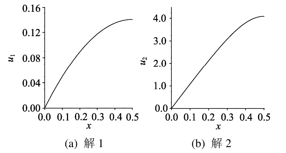 由该条件可知:存在一个大于0的临界值λ*,使得当0<λ<λ*时,控制微分方程有2个解;当λ=λ*时,控制微分方程有唯一解;当λ>λ*时,控制微分方程无解。