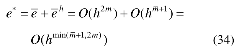 由式(15)、式(21)知,式(32)中R=O(h2m),eh (xe)=O(h2m ),eh(xe+1)=O(h2m ),故当网格足够密时,有: