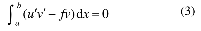 式中,v为检验函数。经分部积分引进边界条件后弱形式如式(3)所示: