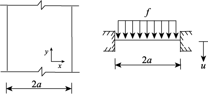 图2所示为半无限长膜问题[25]。当荷载和结构对称时,取一半结构进行分析,其控制微分方程为: