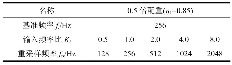 名称 0.5倍配重(η1=0.85)基准频率fi/Hz 256输入频率比Ki 0.5 1.0 2.0 4.0 8.0重采样频率fri/Hz 128 256 512 10242048