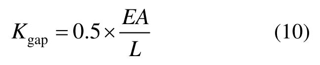 在地震作用下,桥跨之间及边跨与桥台之间时常存在碰撞现象。既往研究表明,碰撞效应对斜交梁桥的地震响应有不可忽略的影响。为了更真实地反映斜交梁桥的地震反应,本文考虑了桥跨与桥台间的碰撞效应。本文通过在桥台与边跨之间以及桥跨之间设置间隙弹簧单元来模拟该效应,总碰撞刚度定为 0.5倍的主梁轴向刚度[28],具体计算公式如下: