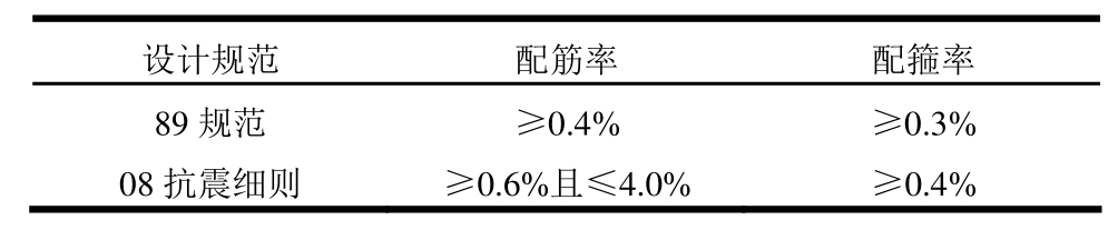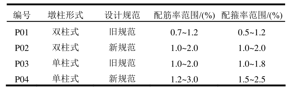 表8 不同墩柱形式和规范对应配筋率、配箍率范围