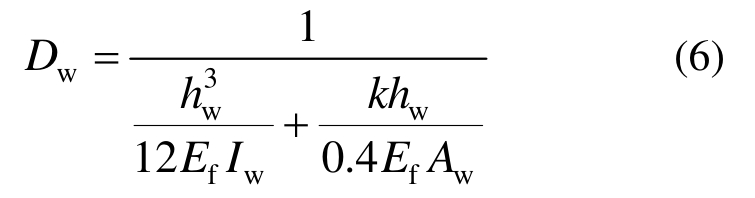 对于耗能墙,可仅考虑其截面弯曲变形和剪切变形对侧向刚度的影响,则一片耗能墙的弹性侧向刚度Dw可表示为: