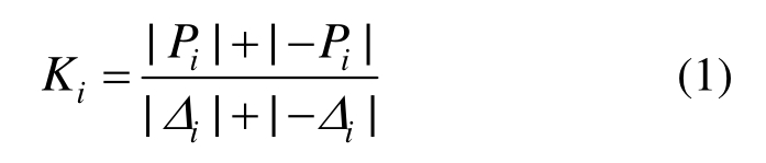式中:Ki是第i级加载下的割线刚度;Pi、-Pi分别是第i级加载下正、反向峰值荷载值;iΔ、-i分别是第i级加载下正、反向峰值荷载对应的位移值。